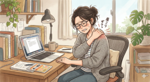 - 呼吸: 鼻から軽く息を吸い、口からゆっくりと時間をかけて息を吐きます。吐くときにおへその下あたり(丹田)を少しへこませるように意識すると、体幹を安定させる効果も高まります。これを数回繰り返すだけでも、リフレッシュになります。